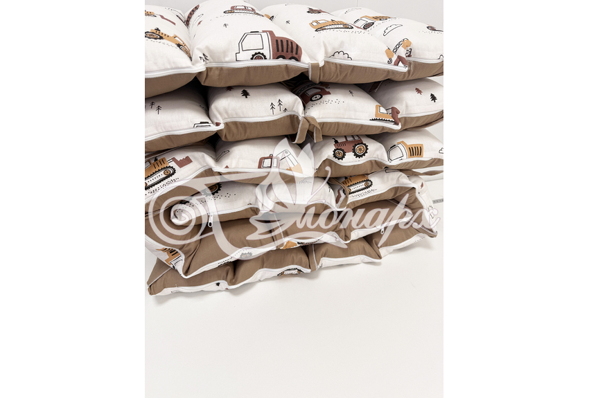 - Бортик-заборчик стеганый плотно забит синтепухом (на замочках): - 2 шт. 60х34 см / - 2 шт. 120х34 см.